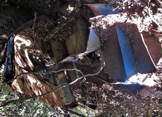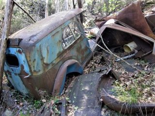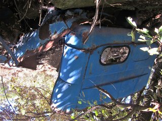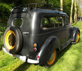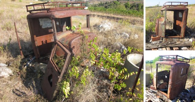 En septembre 2011 j'ai photographié cette épave près de La Livinière. Longtemps j'ai pensé qu'elle était d'une Citroën C4 camionnette, mais la forme du toit avec sa casquette/pare-soleil et sa galerie bricolée, m'ont fait douter. Peut-être il s'agissait d'une C4 berline, transformée en utilitaire pendant ou après la guère? Il pourrait également s'agir d'une Renault Monaquatre, Peugeot 301, Unic, Berlier, ... parce que comme aujourd'hui, des voitures ressemblaient beaucoup.