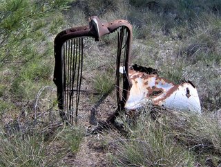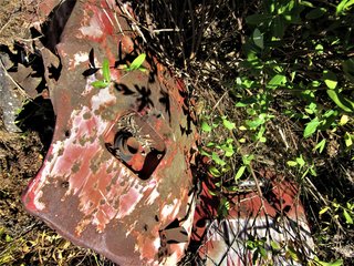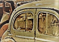 C'est en fait Virginie qui m'a aidé à identifier ces morceaux dérisoires d'une épave à La Boriette. On peut le lire sur le Forum, une Citroën antique signalée par elle dans un jardin à La Redorte a la même lunette arrière asymétrique. Citroën a fabriqué ce modèle U23 'Levallois' de 1953 à 1969.
