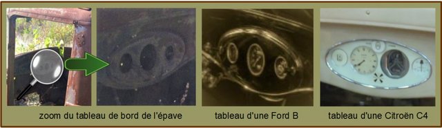 C'était finalement le tableau de bord sur la photo qui m'a donné la clé de l'identification: un tel tableau de bord avec au milieu un ovale pour seulement 3 instruments est typique d'un Ford Truck 1932 - 1934. (Les Citroën B14 et C4 avaient aussi un ovale, mais pour 4 instruments; voir la photo détaillée ci-dessous du tableau de bord © Arnaud25 CC-BY-SA 4.0 )
